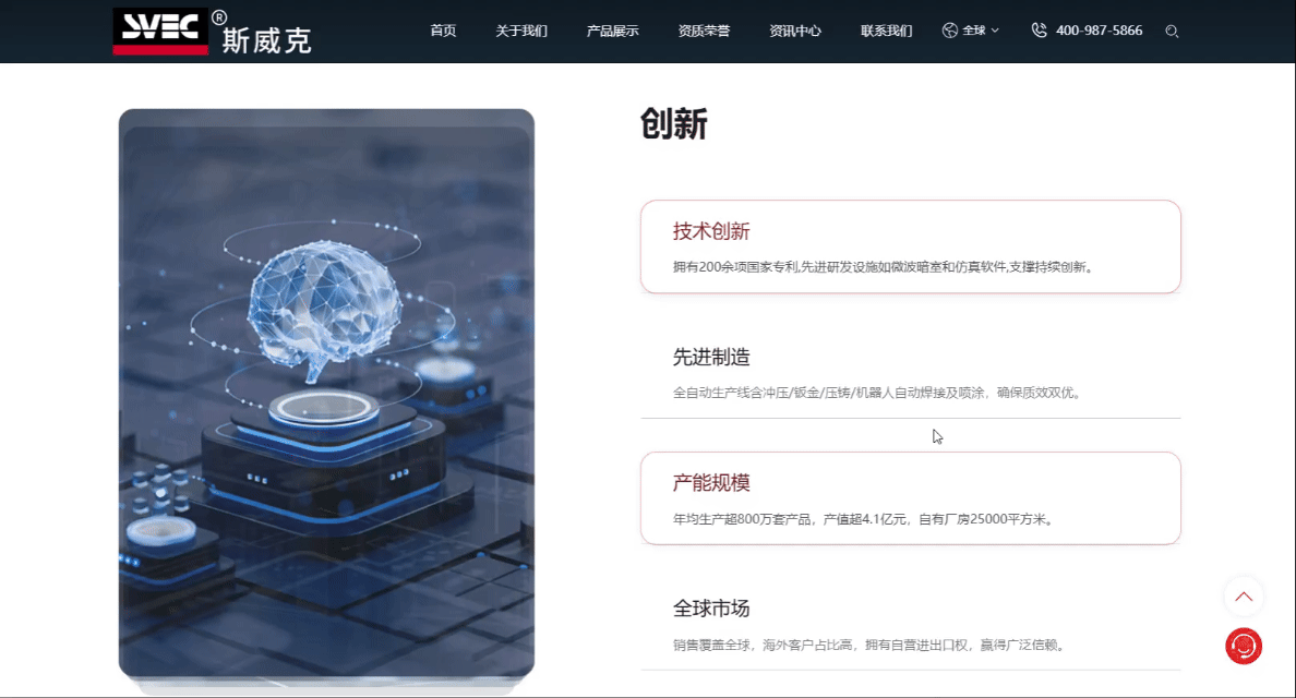 在本次官網(wǎng)建設(shè)中,我們充分結(jié)合了斯威克電子的企業(yè)文化,將品牌色彩、產(chǎn)品應(yīng)用場景融入整體設(shè)計(jì)之中,確保每一個(gè)頁面都能準(zhǔn)確傳達(dá)品牌的調(diào)性和價(jià)值觀。